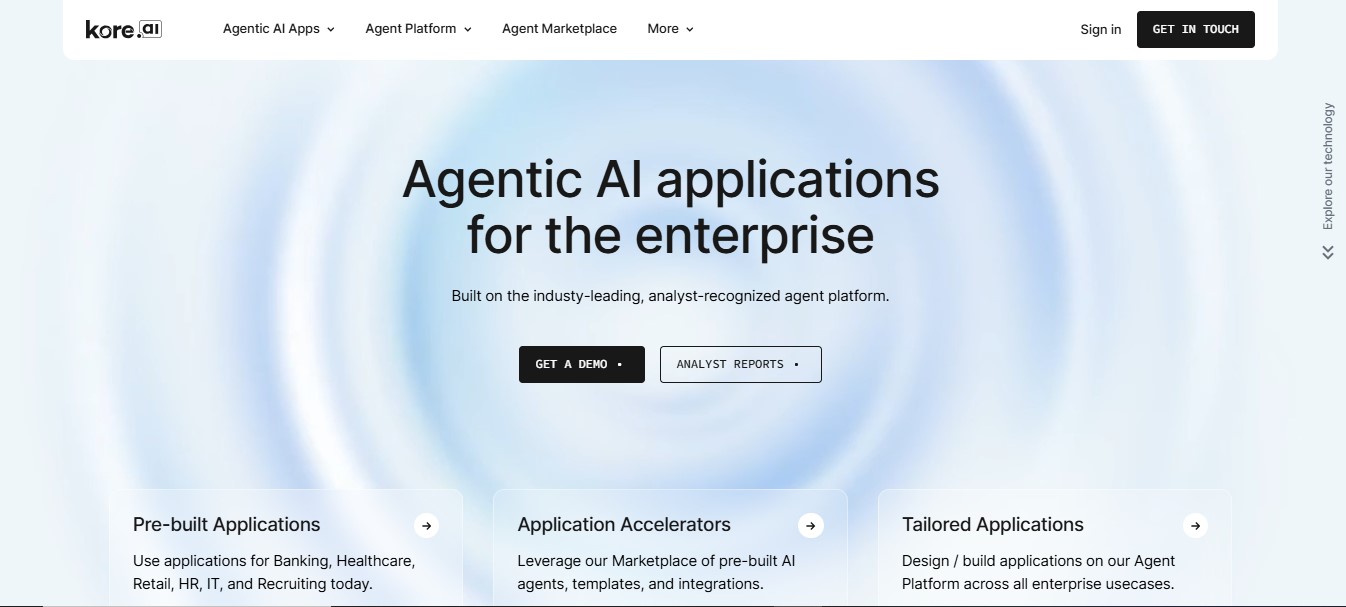 Kore.ai provides end-to-end conversational AI solutions. This tool strategically automates customer interactions 24/7 by offering AI-driven assistance.